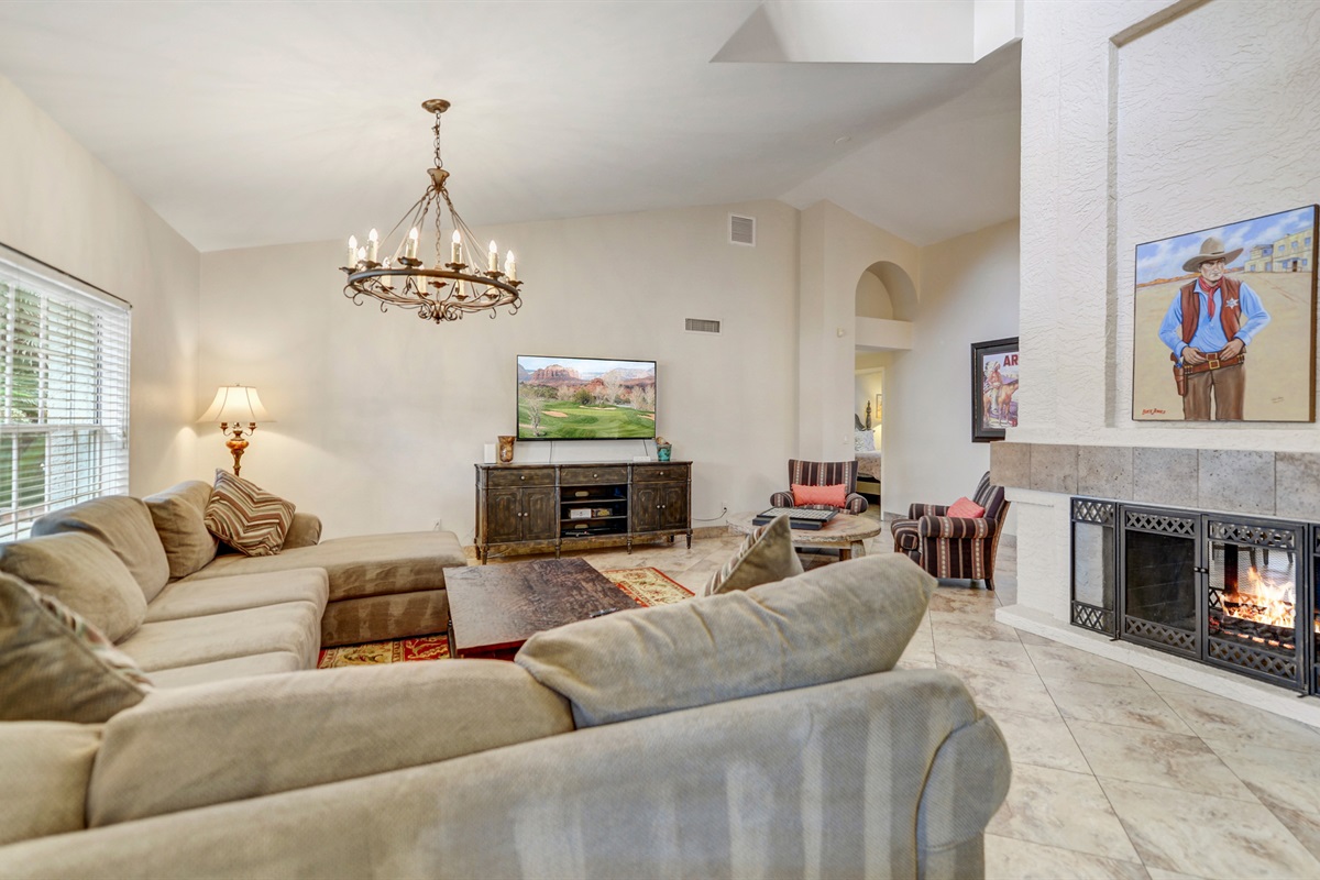 Settling into a spacious 2,089 sq. ft. retreat ensures that you won’t feel cramped during your stay. With an open floor plan designed for maximum enjoyment, you can easily mingle with vacation mates while appreciating the heartwarming ambiance of a two-way fireplace. The living room boasts a big screen television perfect for cozy movie nights, while the family room features another large screen for catching up on your favorite shows. If you have kids in tow, a travel crib is available to ensure that even the tiniest members of your party are comfortable.